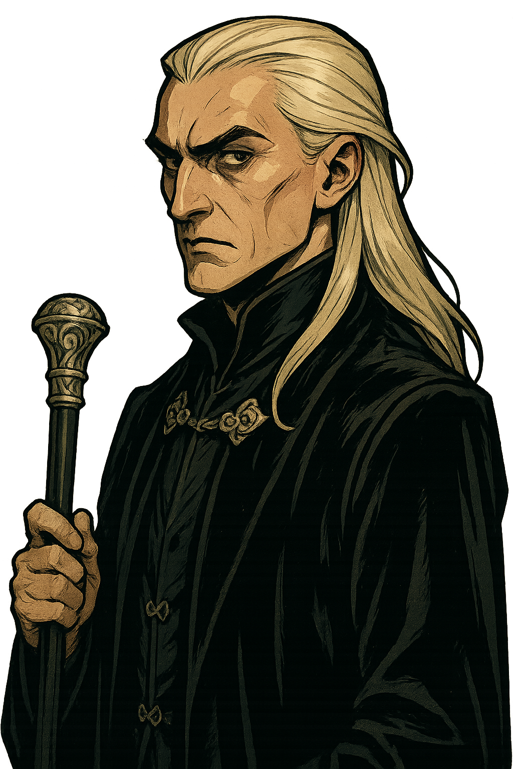 Lucius Malfoy is a wealthy pure-blood wizard and former Death Eater. Aristocratic, calculating, and politically connected, he wielded considerable influence at the Ministry of Magic for decades through a combination of wealth, intimidation, and strategic donations.