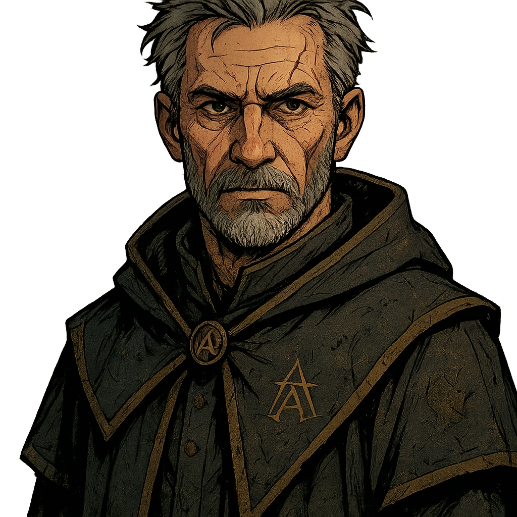 Tobias Crane is a grizzled Auror in his early fifties with salt-and-pepper hair, weathered features, and sharp grey eyes that seem to miss nothing. He wears the standard dark robes of the Auror Office, though his are worn and patched from years of fieldwork. A faint scar runs from his left temple to his jaw. He carries himself with the weary authority of someone who has seen too much but refuses to stop fighting.