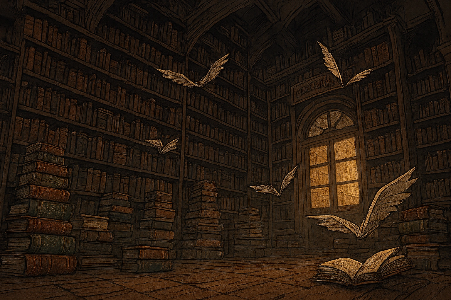 Flourish and Blotts is a cramped, multi-story bookshop in Diagon Alley with shelves stretching floor to ceiling and books stacked in precarious towers. The air smells of old parchment and leather, and some volumes occasionally whisper, snap, or flutter their pages at potential buyers.